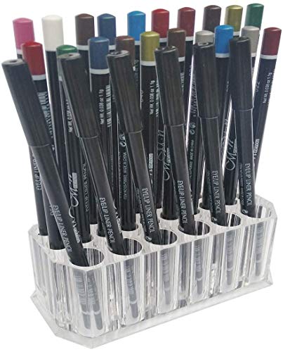 前列の6本は太めのブラシやスティック型のメイク道具が収納可能。中列、後列は細め(鉛筆サイズ)のブラシやアイライナー、アイブローが入ります。中列に比べ後列はやや底上げになっているため、前から見えやすくなっています。